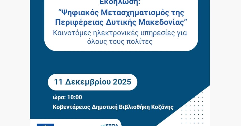 Ενημέρωση και Δράση _ 9 Δεκεμβρίου, 2025 #Ψηφιακός_Μετασχηματισμός ΠΑΡΟΥΣΙΑΣΗ ΜΕΛΕΤΗΣ ΑΣΤΡΟΝΟΜΙΚΟΥ ΠΑΡΚΟΥ ΟΡΛΙΑΚΑ #έργοΕΣΠΑ #ΕΣΠΑ #ΕΣΠΑ_ΔυτικήΜ…9 Δεκεμβρίου, 2025Το 8-σέλιδο αφιέρωμα της εφημερίδας political.gr στην Δυτική Μακεδονία. #Δυτι…9 Δεκεμβρίου, 2025