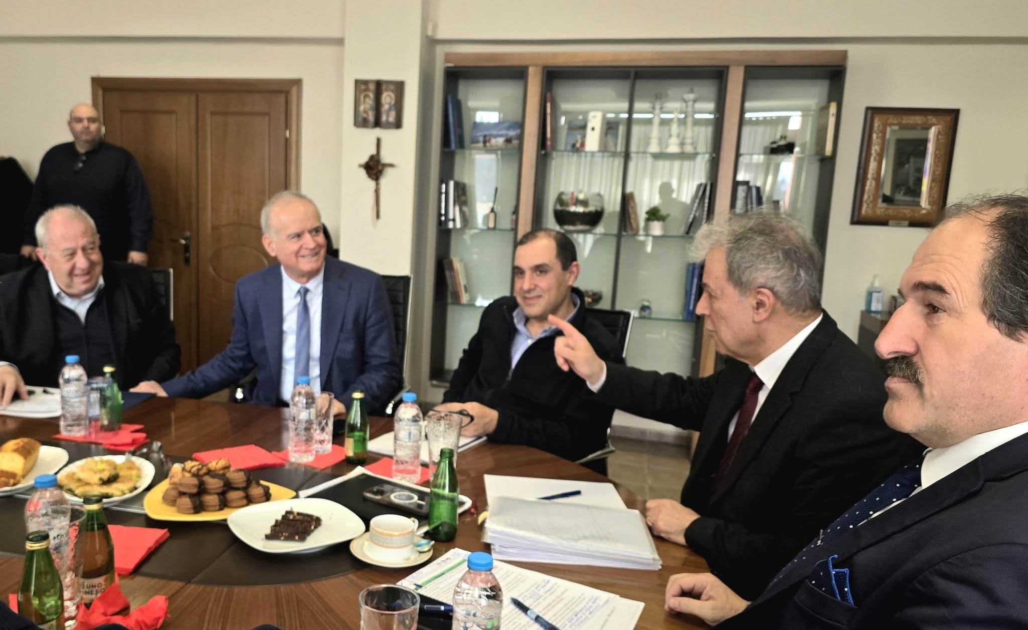 ✅️ Τα μέλη του Κυβερνητικού Κλιμακίου που επισκέπτονται την #Περιφερειακή_Ενότητα_Φλώρινας υποδέχτηκαν, σήμερα το μεσημέρι στην έδρα της Περιφερειακής Ενότητας, ο Περιφερειάρχης Δυτικής Μακεδονίας Γιώργος Αμανατίδης μαζί με τον Αντιπεριφερειάρχη Π.Ε. Φλώρινας Αθανάσιος Τάσκας και τον Αντιπεριφερειάρχη Πολιτικής Προστασίας Ιωάννης Κιοσές.